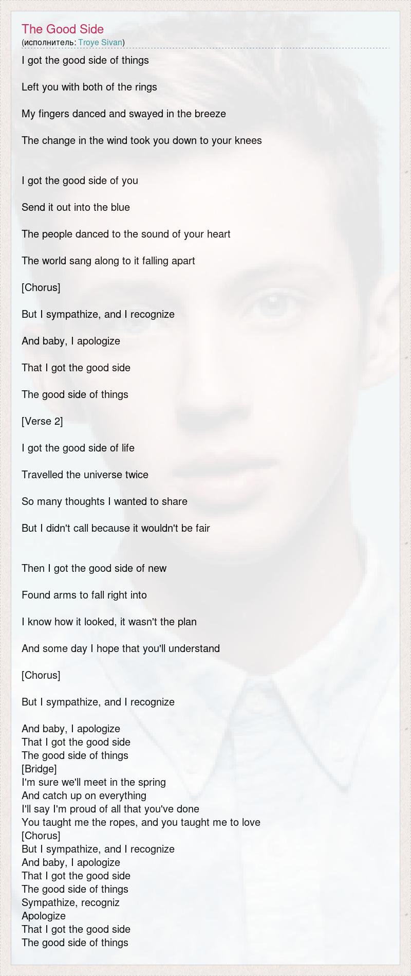 А как ты думаешь, о чем песня "I got the good side of things" ?