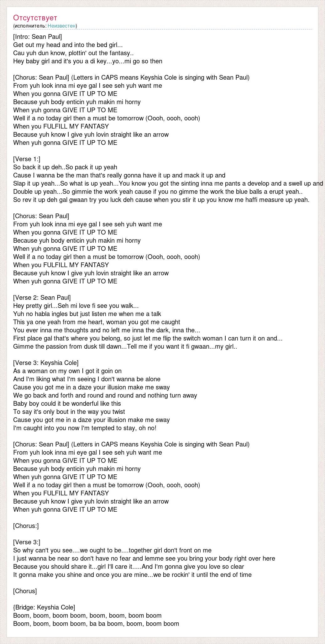 А как ты думаешь, о чем песня "[Intro: Sean Paul]" ?