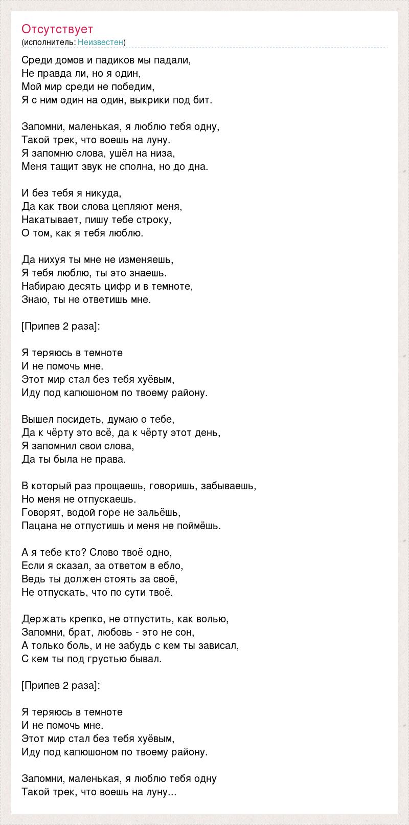 А как ты думаешь, о чем песня "Среди домов и падиков мы падали, Не правда ли, но я один, Мой мир" ?